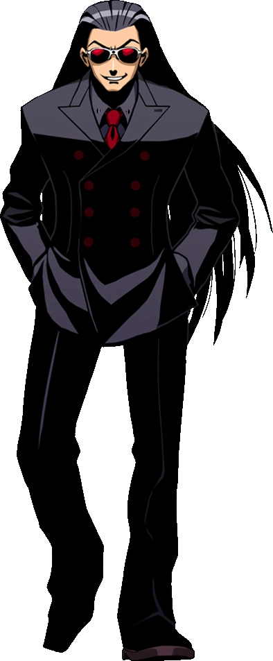 Sai has a longer hair and mostly wore black outer business suit, and both red necktie and sunglasses. True by his mythical evil eyes, his eye color and shapes are sharp demonic looking yellow, and sclera will change black whether the eyes' true power is activated.